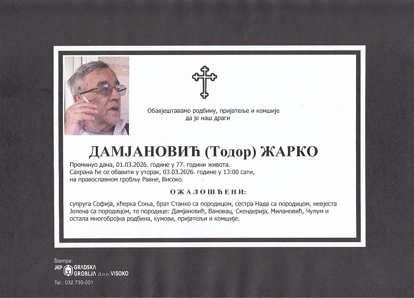 DAMJANOVIĆ (Todor) ŽARKO 03.03.2026. u 13:00 sati