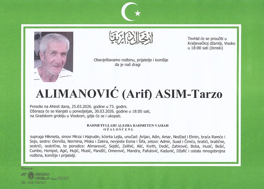 ALIMANOVIĆ (Arif) ASIM-Tarzo 30.03.2026. u 18:00 sati