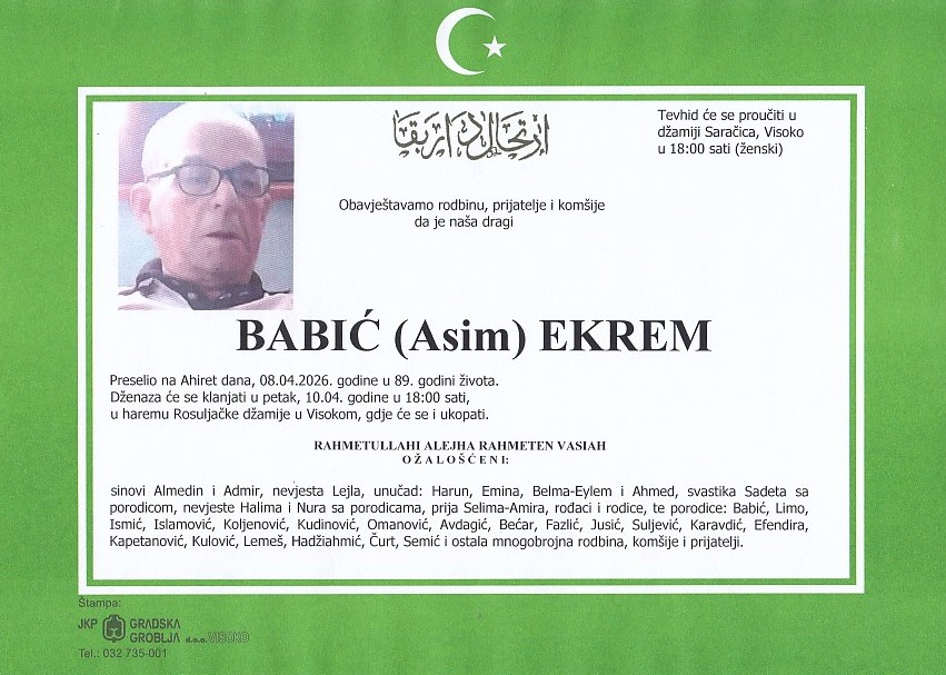 BABIĆ (Asim) EKREM 10.04.2026. u 18:00 sati