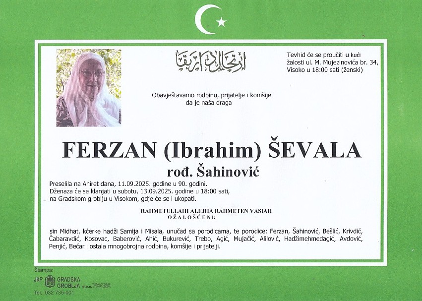 FERZAN (Ibrahim) ŠEVALA 13.09.2025. u 18:00 sati
