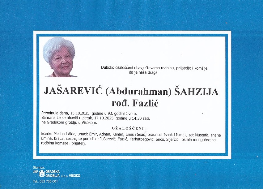 JAŠAREVIĆ (Abdurahman) ŠAHZIJA 17.10.2025. u 14:30 sati