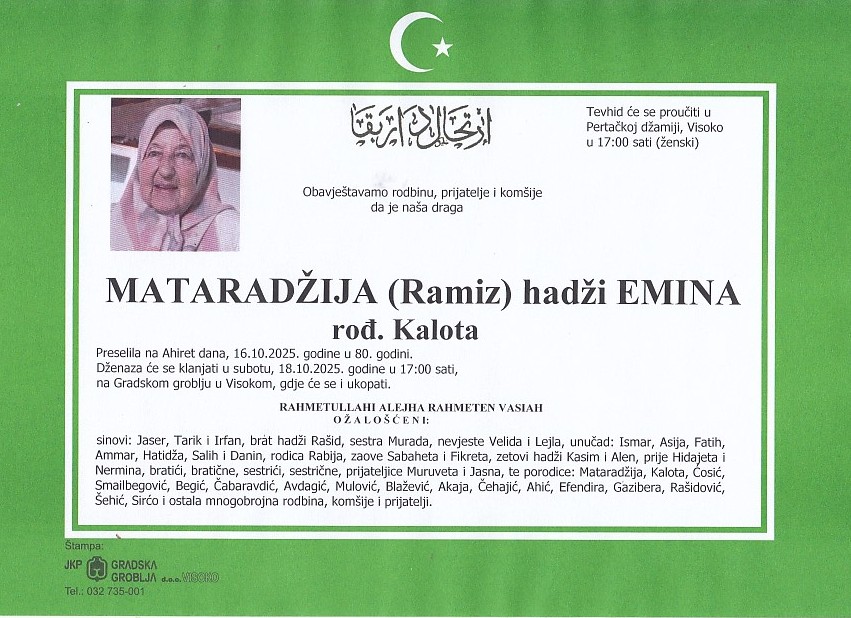 MATARADŽIJA (Ramiz) EMINA 18.10.2025. u 17:00 sati