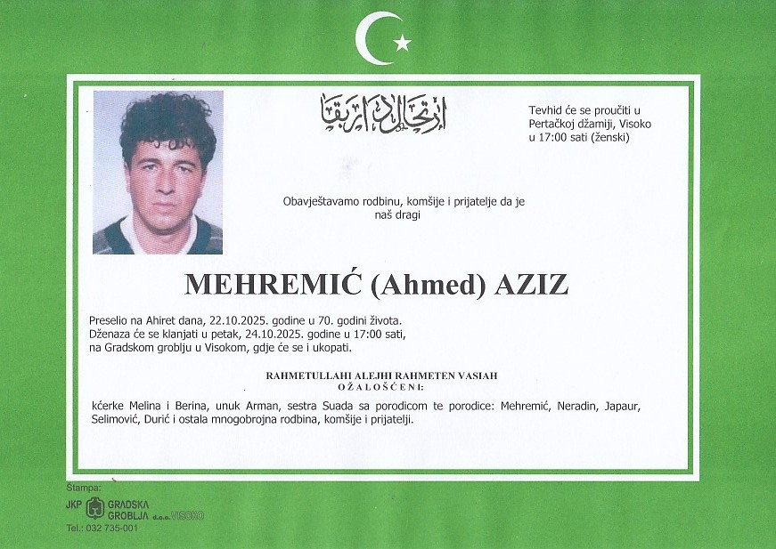 MEHREMIĆ (Ahmed) AZIZ 24.10.2025. u 17:00 sati