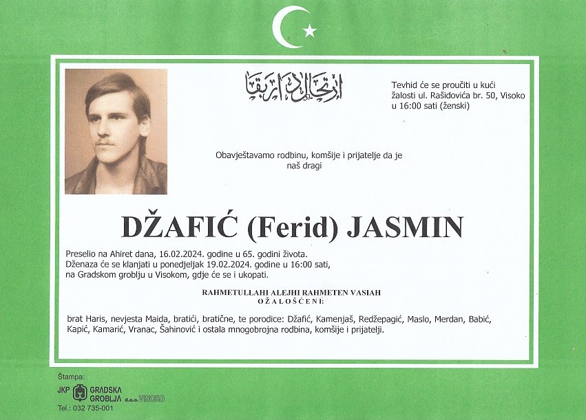 DŽAFIĆ (Ferid) JASMIN 19.02.2024. godine u 16:00 sati