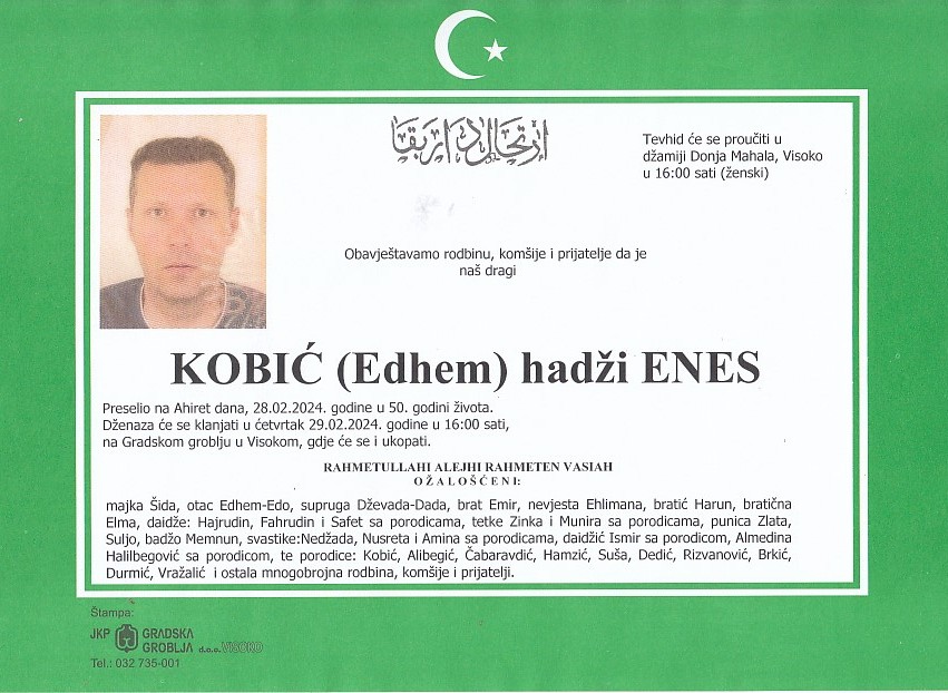 KOBIĆ (Edhem) ENES 29.02.2024. godine u 16:00 sati
