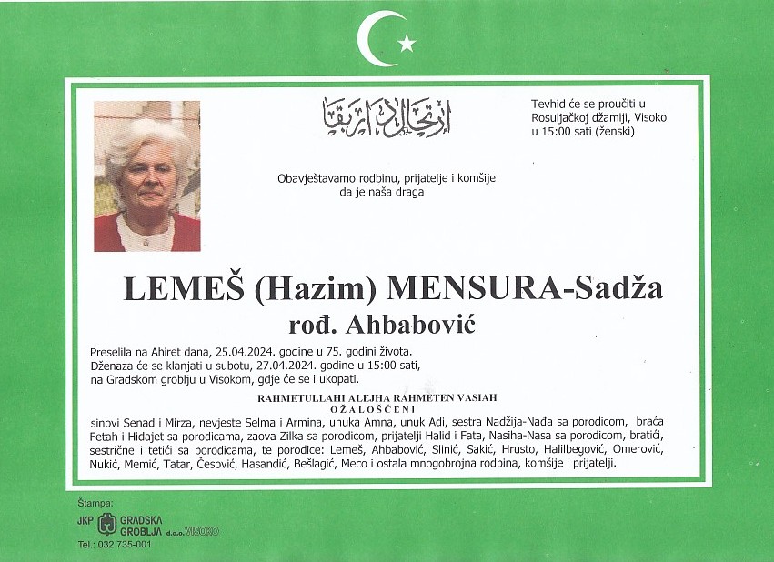 LEMEŠ (Hazim) MENSURA 27.04.2024. godine u 15:00 sati