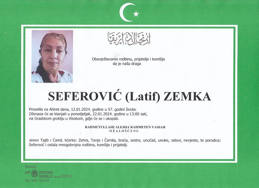 SEFEROVIĆ (Latif) ZEMKA 22.01.2024. godine u 13:00 sati