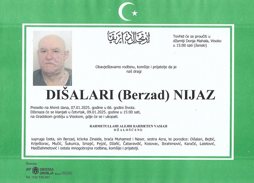 DIŠALARI (Berzad) NIJAZ 09.01.2025. godine u 15:00 sati
