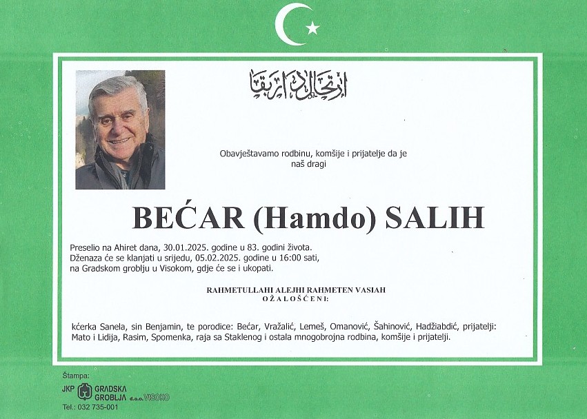 BEĆAR (Hamdo) SALIH 05.02.2025. godine u 16:00 sati
