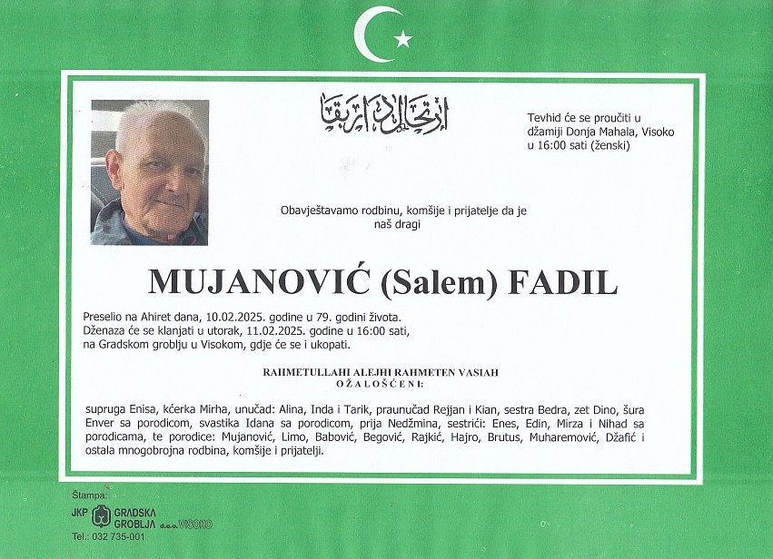 MUJANOVIĆ (Salem) FADIL 11.02.2025. godine u 16:00 sati