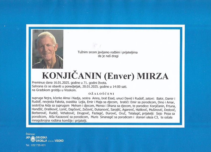 KONJIČANIN (Enver) MIRZA 20.01.2025. godine u 14:00 sati