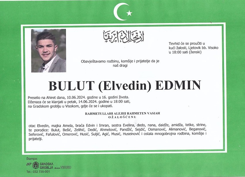 BULUT (Elvedin) EDMIN 14.06.2024. godine u 18:00 sati