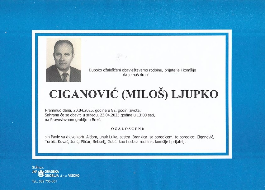 CIGANOVIĆ (Miloš) LJUPKO 23.04.2025. godine u 13:00 sati