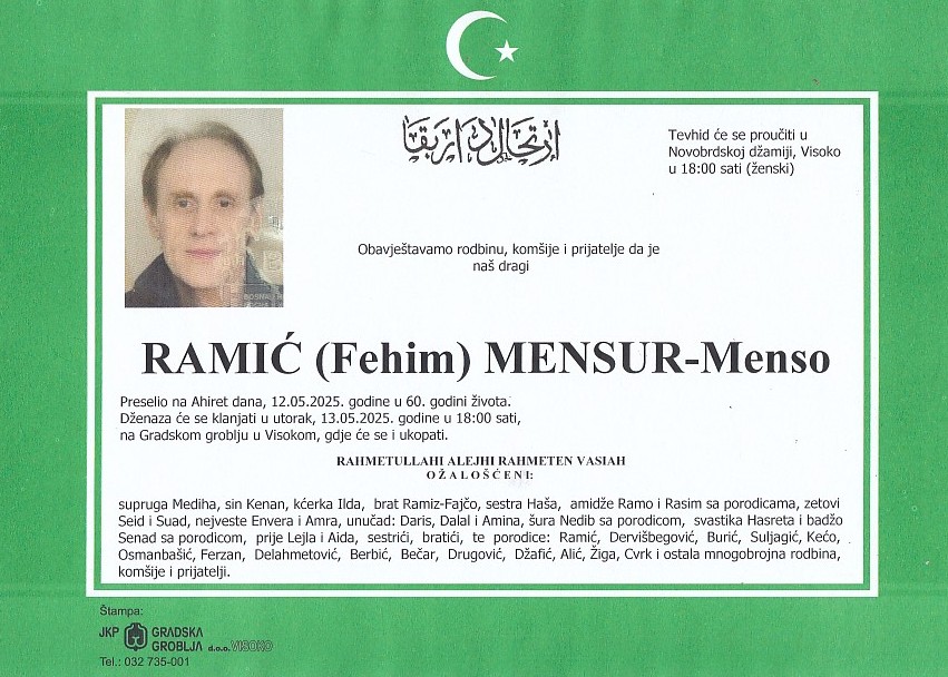 RAMIĆ (Fehim) MENSUR 13.05.2025. godine u 18:00 sati