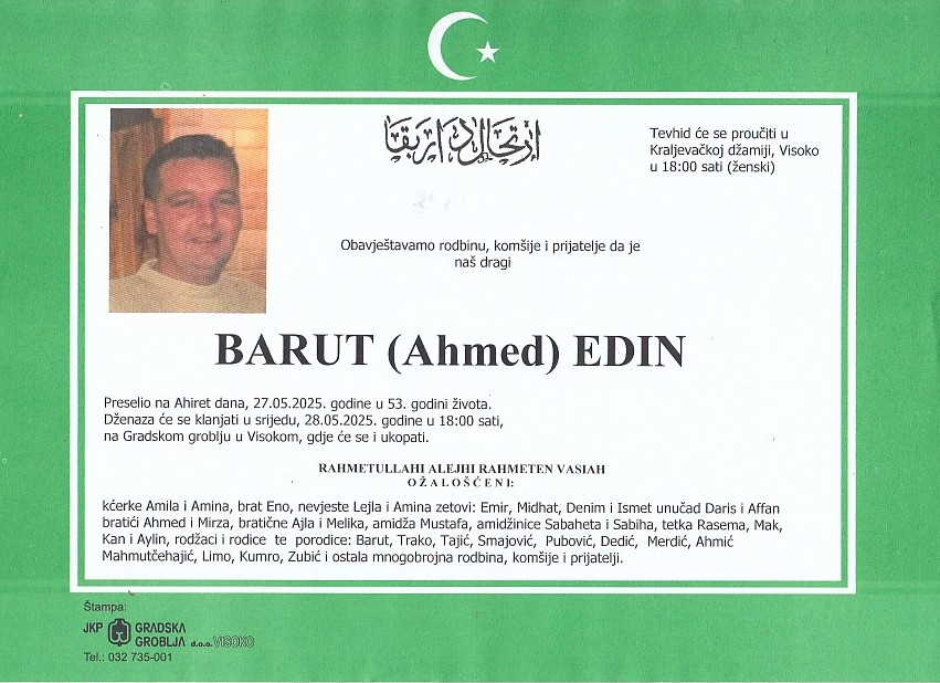 BARUT ( Ahmed) EDIN 28.05.2025. godine u 18:00 sati
