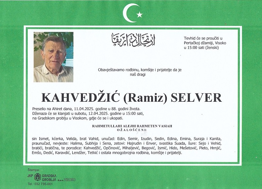 KAHVEDŽIĆ (Ramiz) SELVER 12.04.2025. godine u 15:00 sati