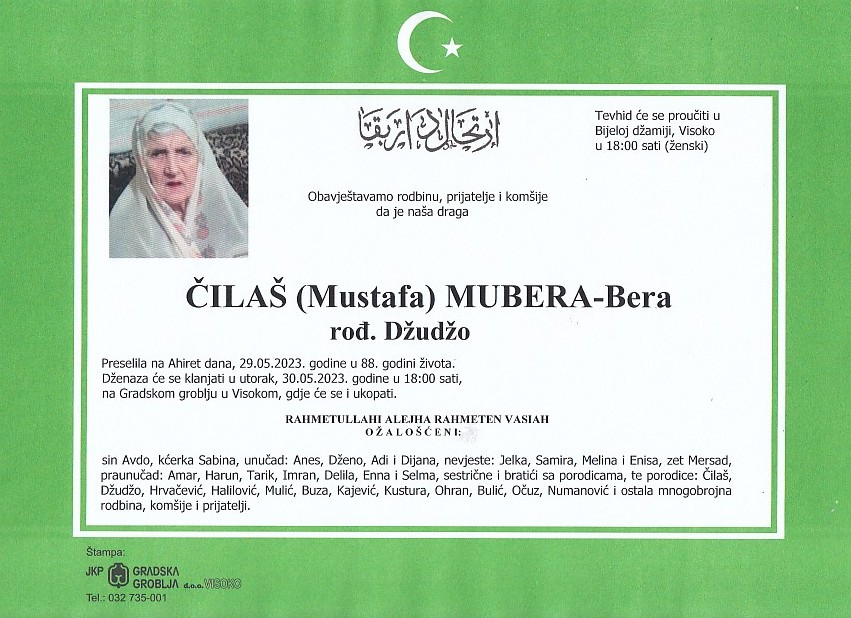 ČILAŠ (Mustafa) MUBERA-Bera 30.05.2023. godine u 18:00 sati