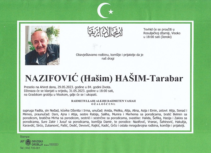 NAZIFOVIĆ (Hašim) HAŠIM 31.05.2023. godine u 18:00 sati