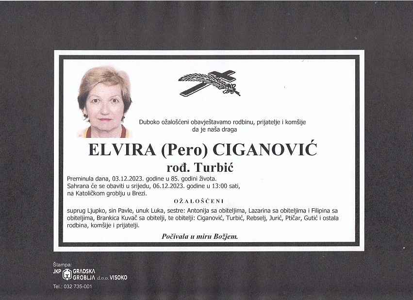 CIGANOVIĆ (Pero) ELVIRA 06.12.2023. godine u 13:00 sati
