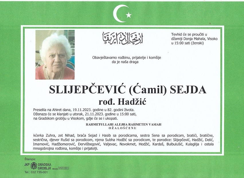 SLIJEPČEVIĆ (Ćamil) SEJDA 21.11.2023. godine u 15:00 sati