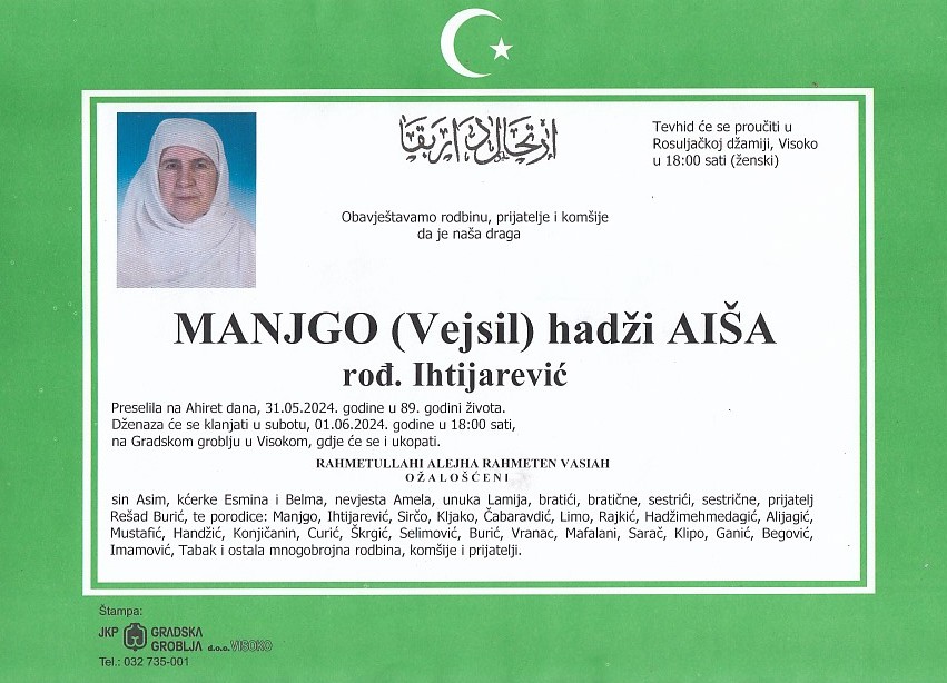 MANJGO (Vejsil) AIŠA 01.06.2024. godine u 18:00 sati