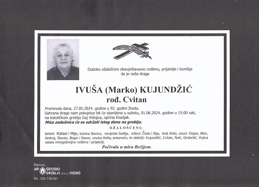 KUJUNDŽIĆ (Marko) IVUŠA 01.06.2024. godine u 15:00 sati