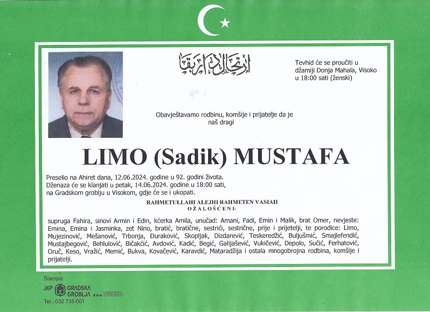 LIMO (Sadik) MUSTAFA 14.06.2024. godine u 18:00 sati