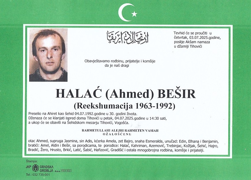 HALAĆ (Ahmed) BEŠIR 04.07.2025. godine u 14:30 sati