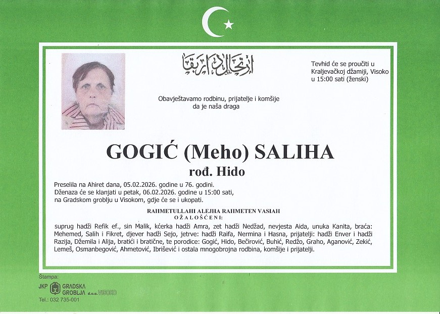 GOGIĆ (Meho) SALIHA 06.02.2026. u 15:00 sati