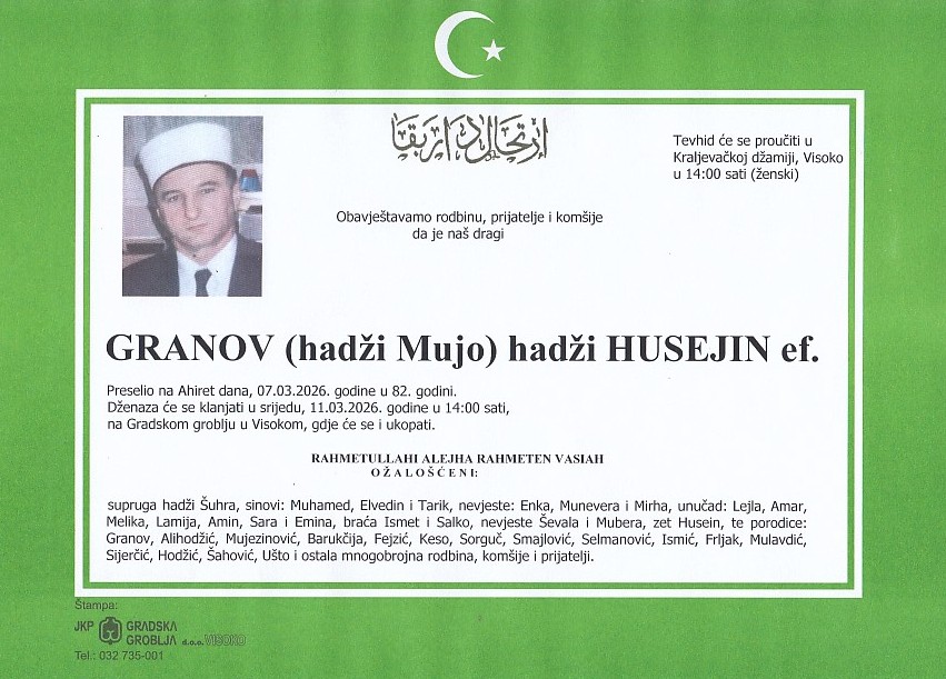 GRANOV (hadži Mujo) hadži HUSEJIN ef. 11.03.2026. u 14:00 sati