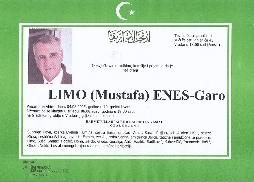LIMO (Mustafa) ENES-Garo 06.08.2025. u 18:00 sati