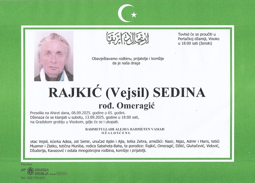 RAJKIĆ (Vejsil) SEDINA 13.09.2025. u 18:00 sati