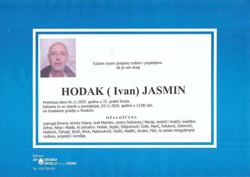 HODAK (Ivan) JASMIN 03.11.2025. u 13:00 sati