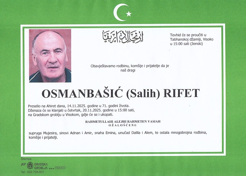 OSMANBAŠIĆ (Salih) RIFET 20.11.2025. u 15:00 sati