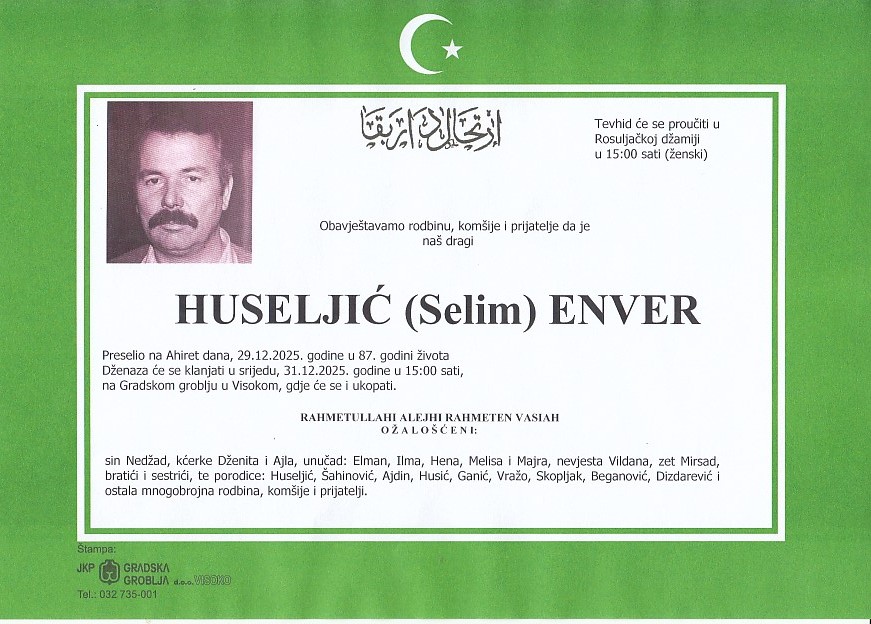 HUSELJIĆ (Selim) ENVER 31.12.2025. u 15:00 sati