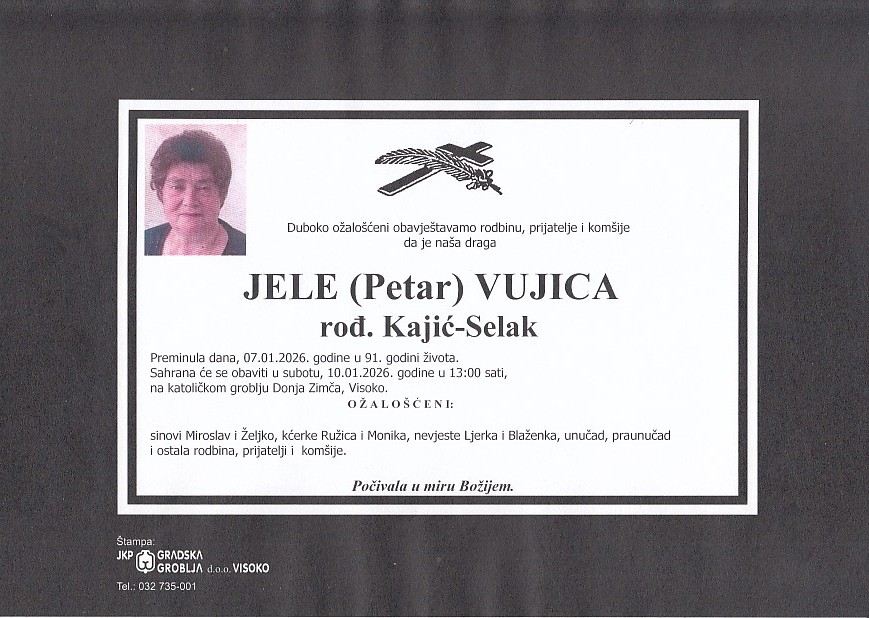 JELE (Petar) VUJICA 10.01.2026. u 13:00 sati