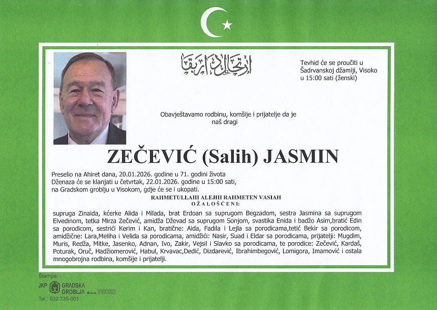 Sljedeći članak: MUZAFERIJA (Taib) NEDŽAD 20.01.2026. u 15:00 sati