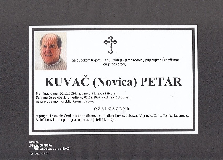 KUVAČ (Novica) PETAR 01.12.2024. godine u 13:00 sati