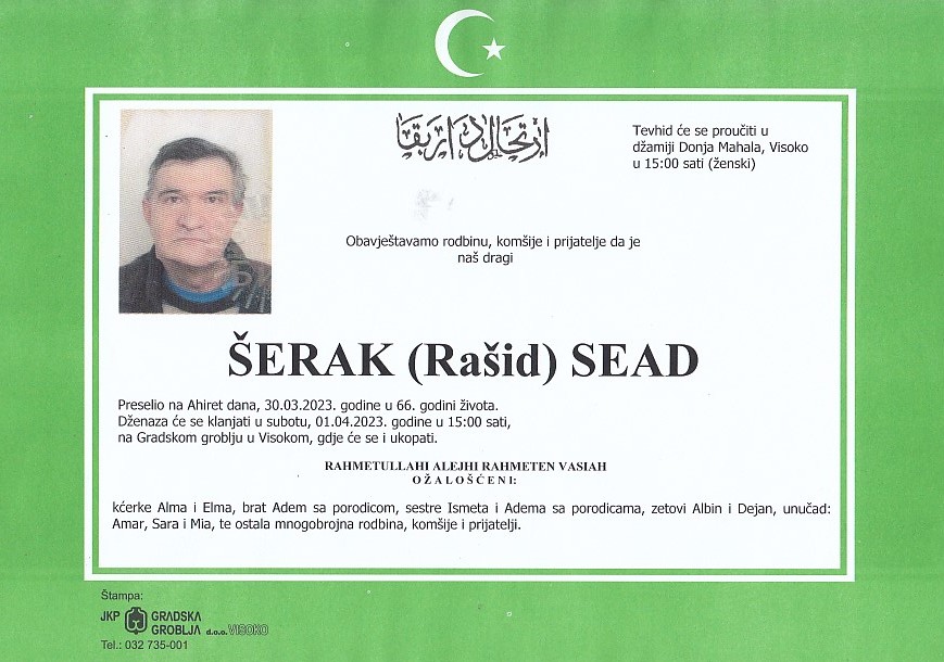 ŠERAK (Rašid) SEAD 01.04.2023. godine u 15:00 sati