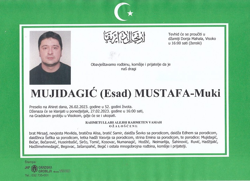 MUJIDAGIĆ (Esad) MUSTAFA 27.02.2023. godine u 16:00 sati