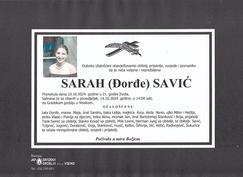 SAVIĆ (Đorđe) SARAH 14.10.2024. godine u 14:00 sati