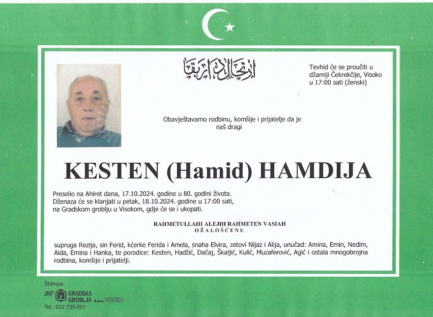 KESTEN (Hamid) HAMDIJA 18.10.2024. godine u 17:00 sati