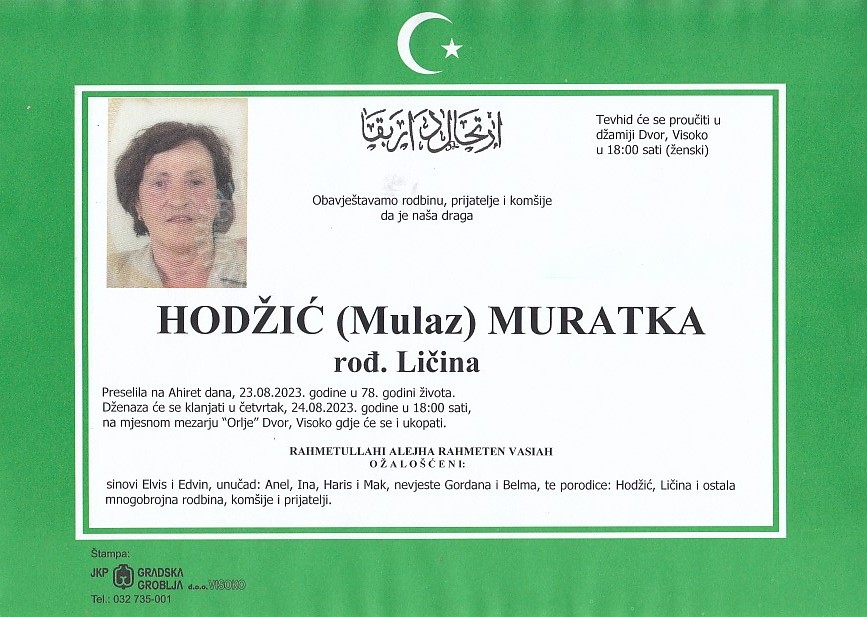 HODŽIĆ (Mulaz) MURATKA 24.08.2023. godine u 18:00 sati