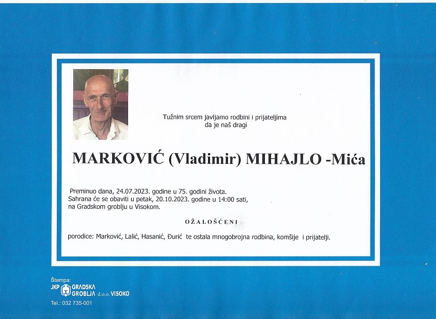 MARKOVIĆ (Vladimir) MIHAJLO 20.10.2023. godine u 14:00 sati