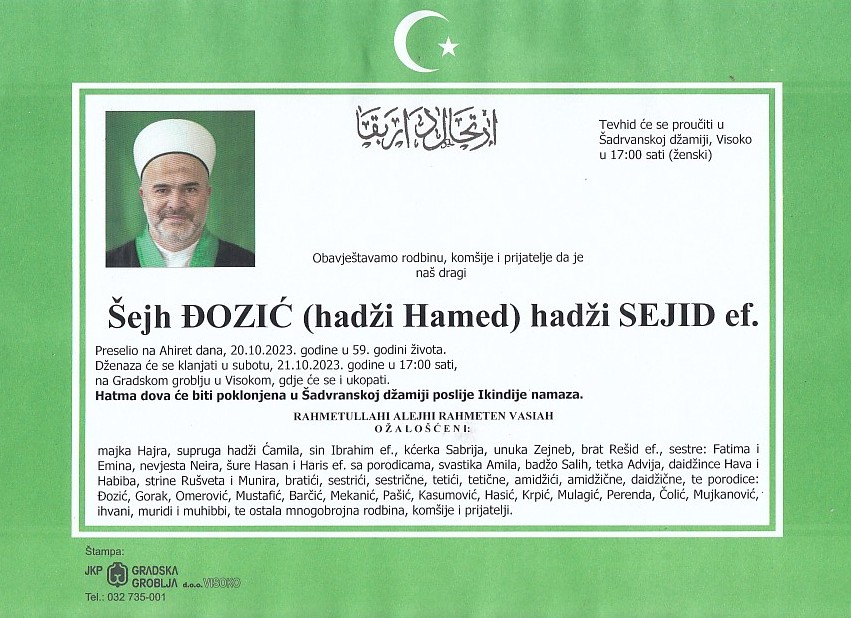 ĐOZIĆ (Hamed) SEJID 21.10.2023. godine u 17:00 sati