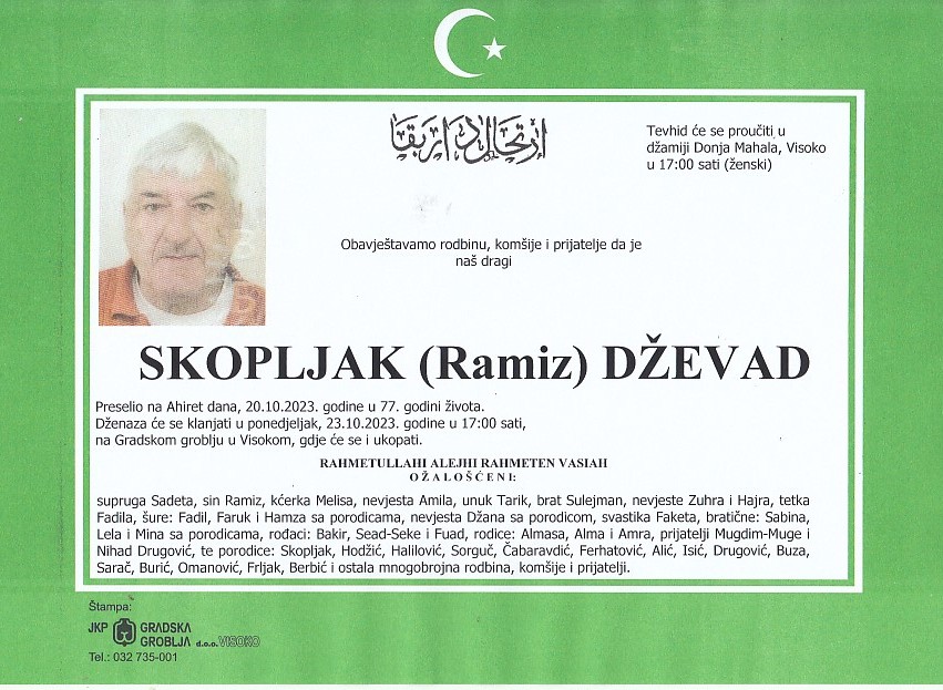SKOPLJAK (Ramiz) DŽEVAD 23.10.2023. godine u 17:00 sati
